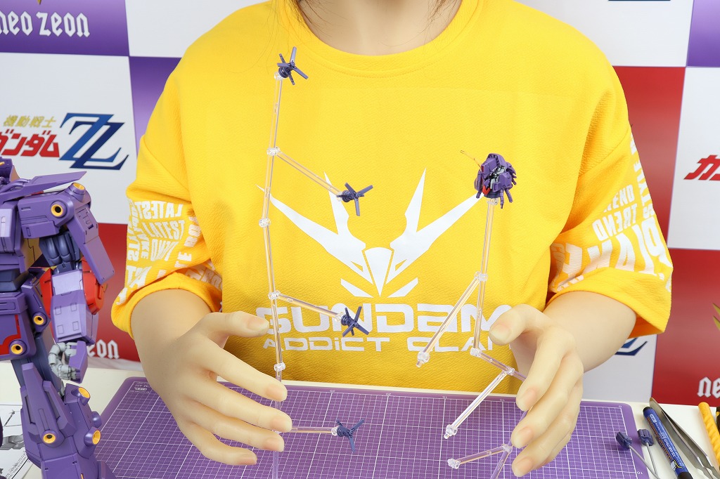 ウェポンディスプレイベースには、半壊頭部や、展開状態のリフレクター・ビットを付けたり…