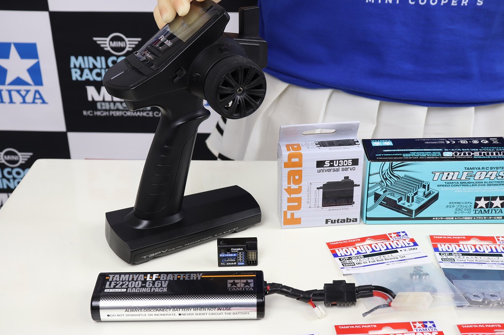 プロポはフタバの「3PV」、受信機はフタバの「R314SB-E」です。バッテリーはタミヤの「LFバッテリー LF2200-6.6V」を使います。