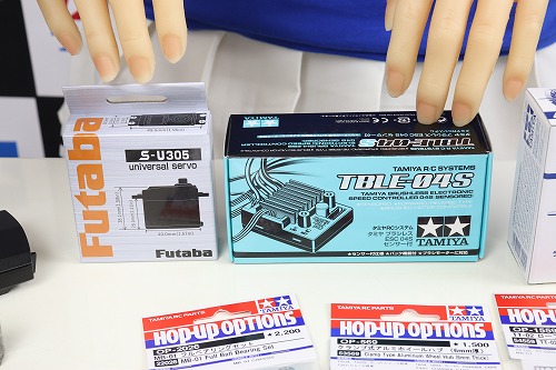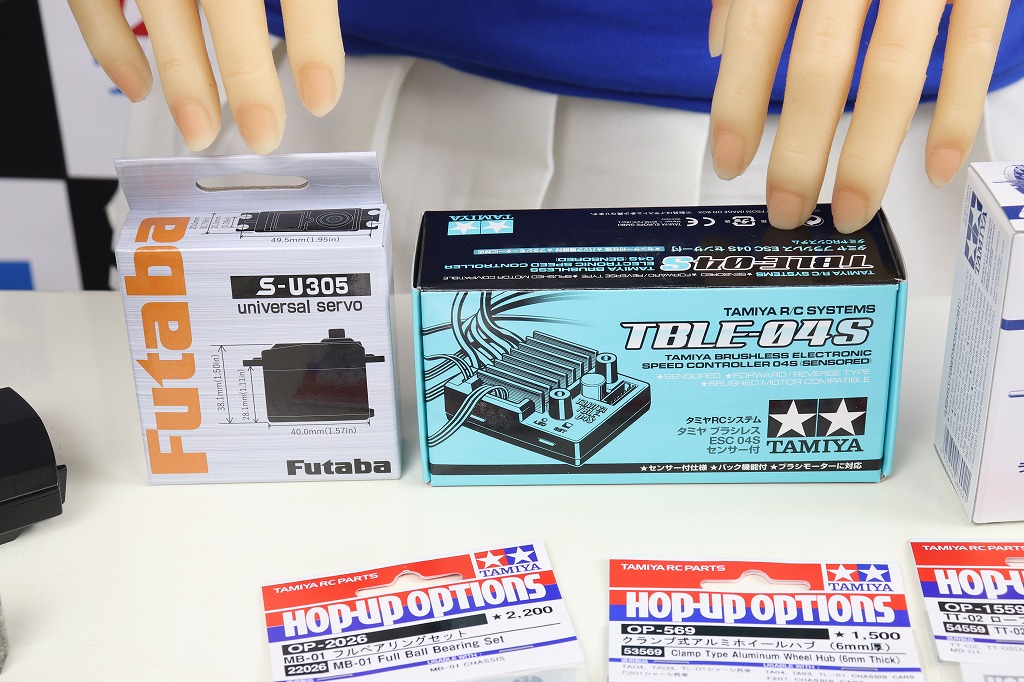 サーボはフタバのデジタルサーボ「S-U305」、スピードコントローラーはタミヤ「TBLE-04S」を使います。スピードコントローラーは新品ではなく、過去に作った「スカッシュバン」から外したものです。