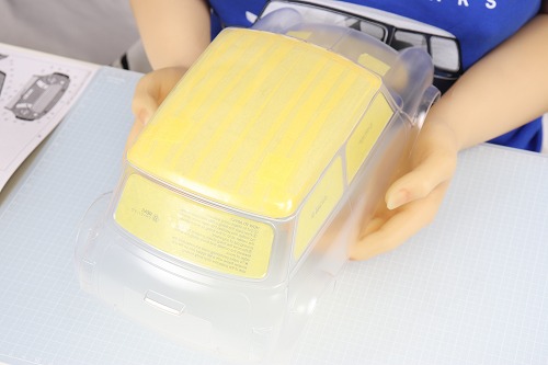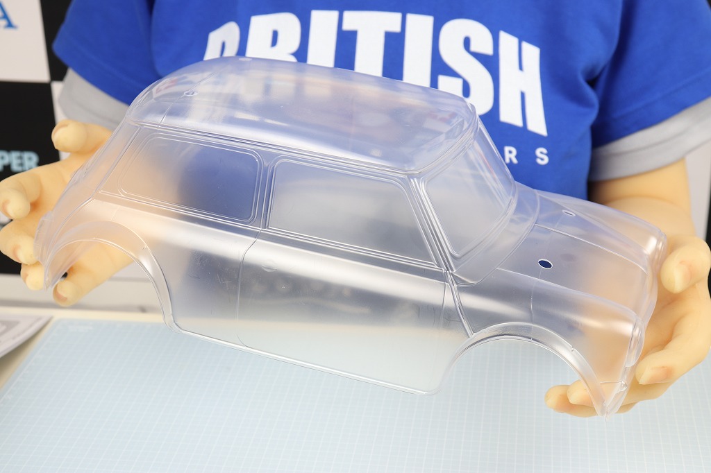 ちなみに、ボディは最初から穴があいており、タイヤのアーチ部分もカット済みです。なので、直線的にカットするだけでOKです。