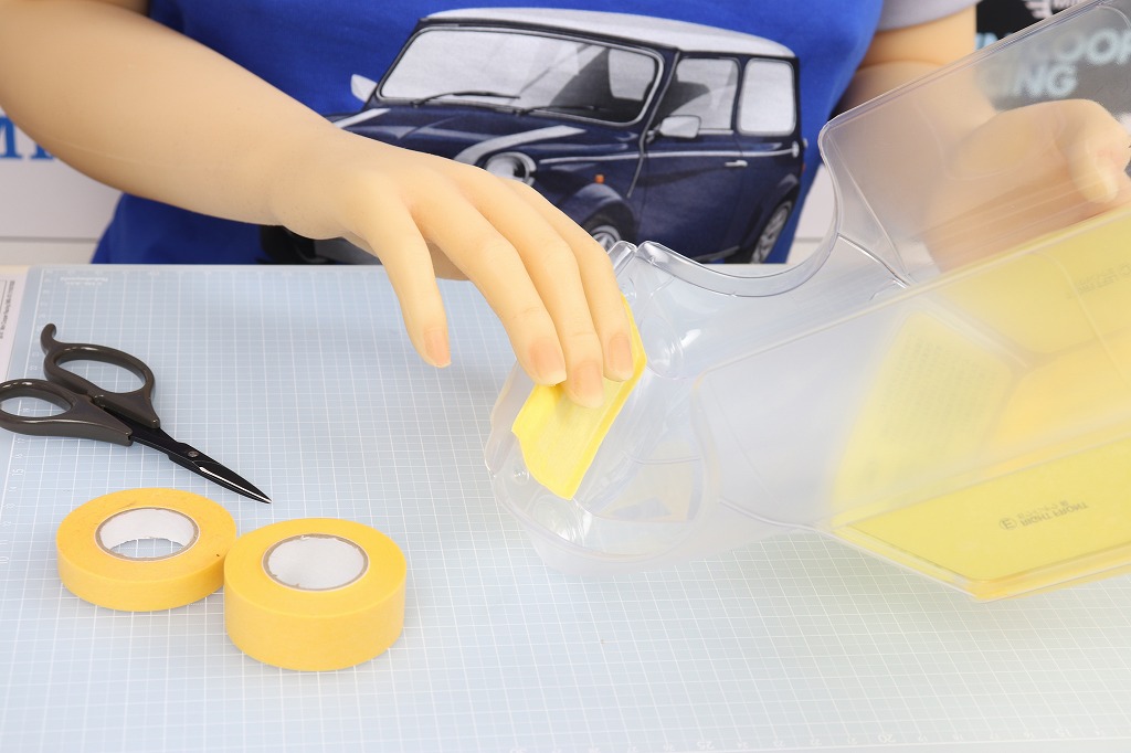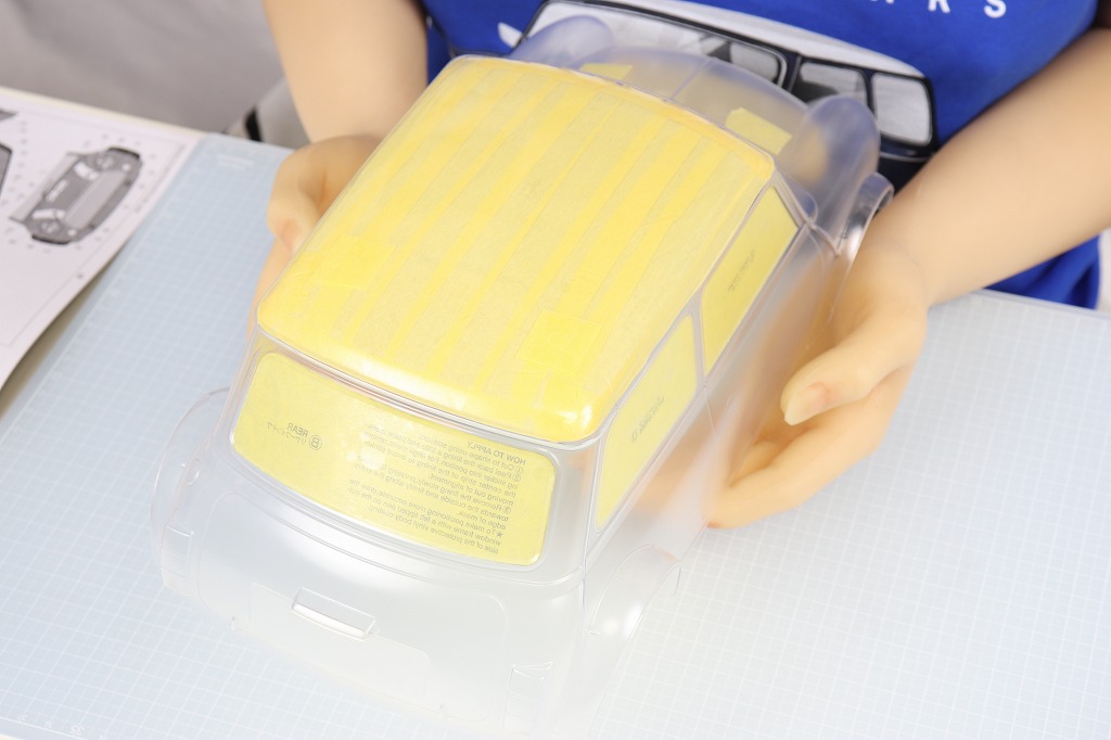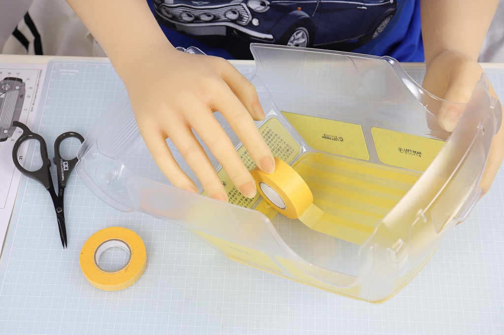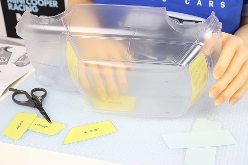 塗装準備をしましょう。まずは、ボディをカットします。カッターで外周をなぞり…