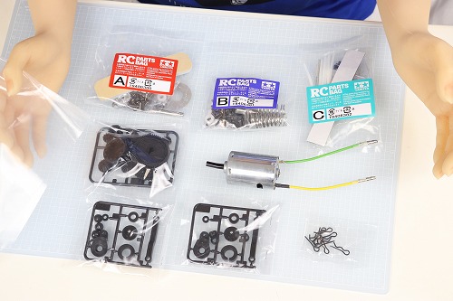 中には「A」~「C」の小袋と、モーターやギヤなどのパーツが入っています。