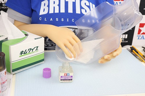 カットした時に手でベタベタ触ってしまったので、プレペイントクリーナーで塗装面の油汚れを拭いておきます。