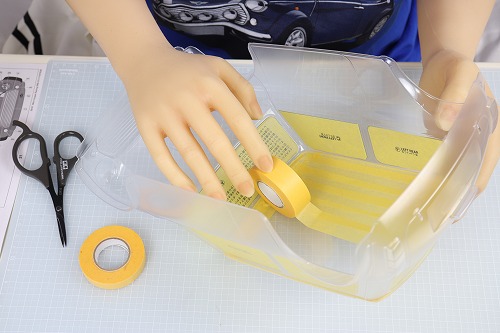 次は、マスキングです。窓に貼るマスキングシールをカットします。