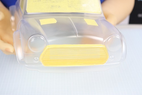 ちなみに、フロントグリルも天井部分も縁取りシールがあるので、多少雑にマスキングしても大丈夫です。