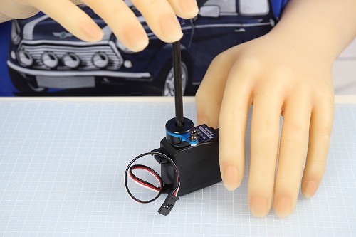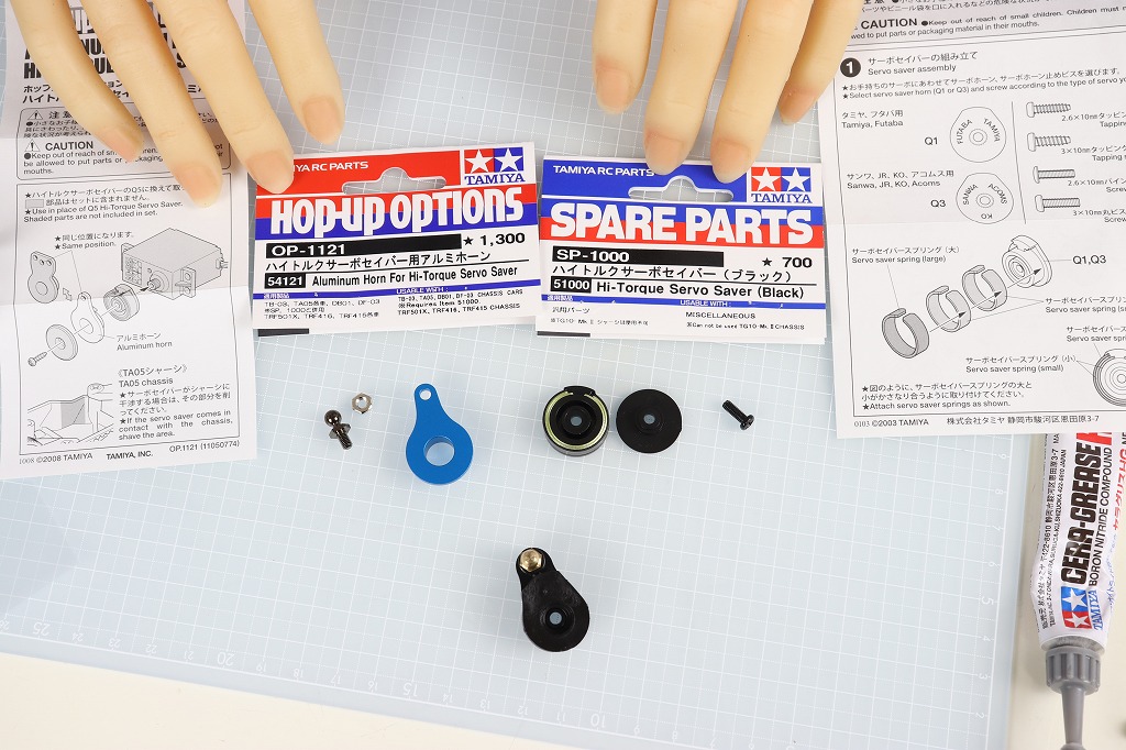 サーボにはオプションパーツ「ハイトルクサーボセイバー」と「OP-1121 ハイトルクサーボセイバー用アルミホーン」を取り付けます。