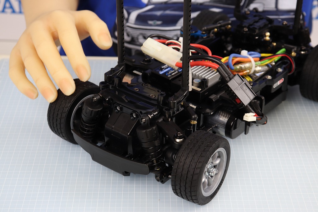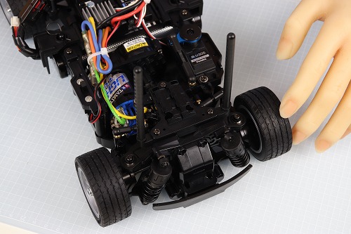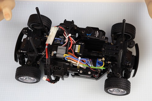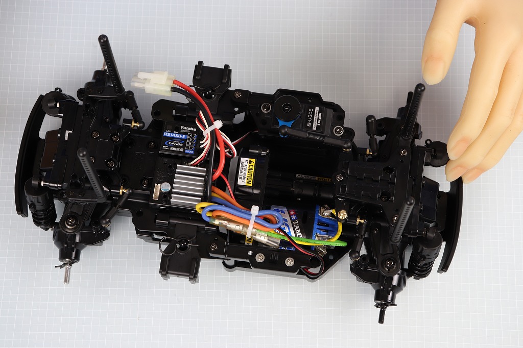 おそらく、現在タミヤが販売している1/10サイズのRCカーで、最も全長が短いRCカーです。全長315㎜しかありません。