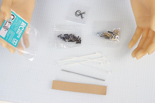 ということで、ここでマニュアルの順番を変え、ステアリングを作ります。まずは、左右のロッドを2本ずつ作ります。