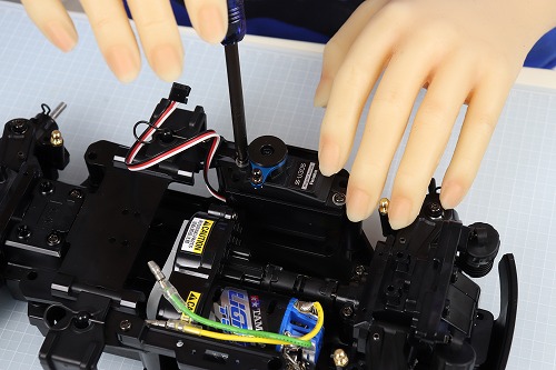 バッテリーを接続し、サーボのニュートラルを確認します。…よし、確認しました。