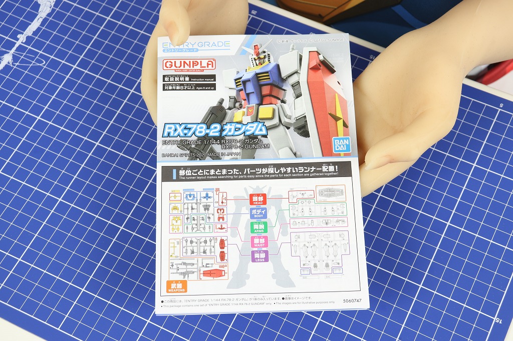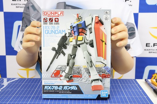 2体目は、「ENTRY GRADE 1/144 RX-78-2 ガンダム」です。これは、HGの見た目を維持しつつ、パーツ数を極限まで減らし、誰でも簡単に組み立てられることに特化したガンプラです。パッケージ版の他、袋に入ったライトパッケージ版もあります。