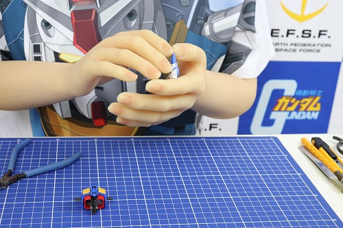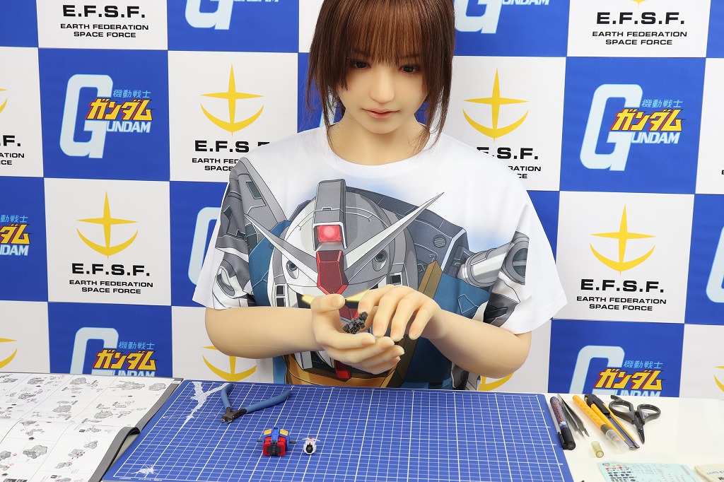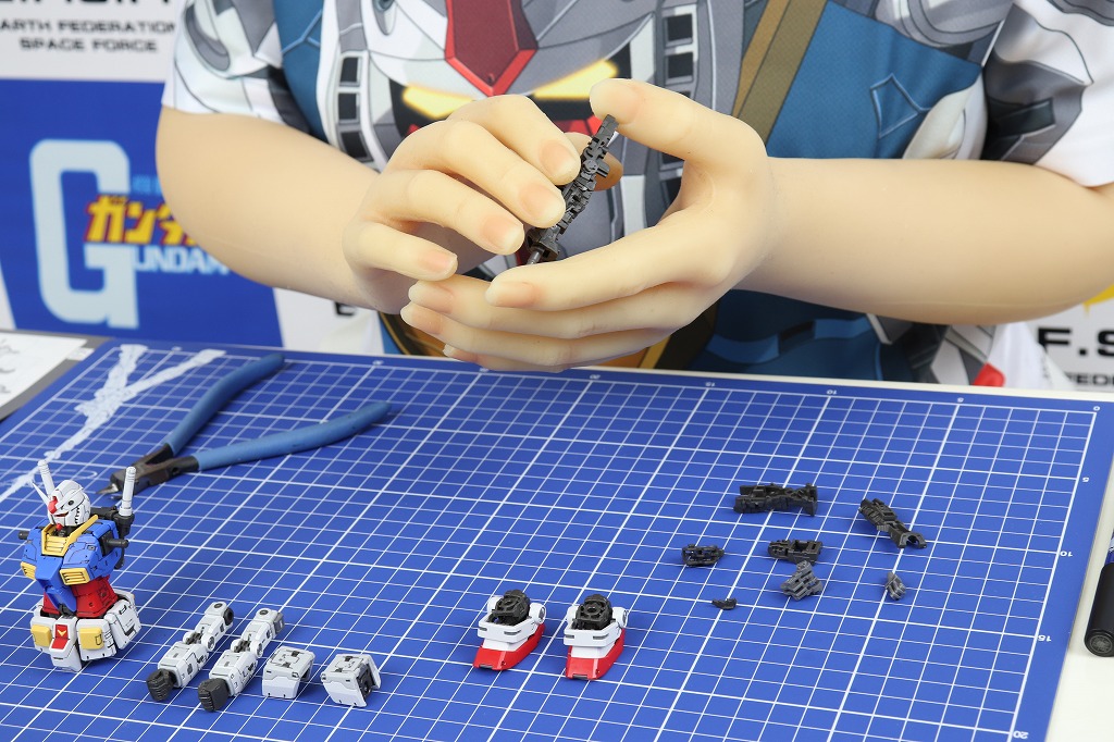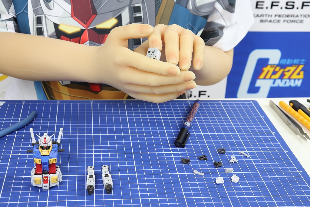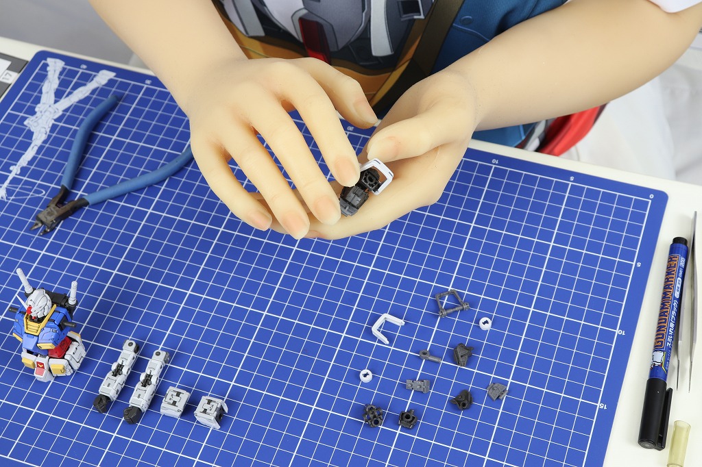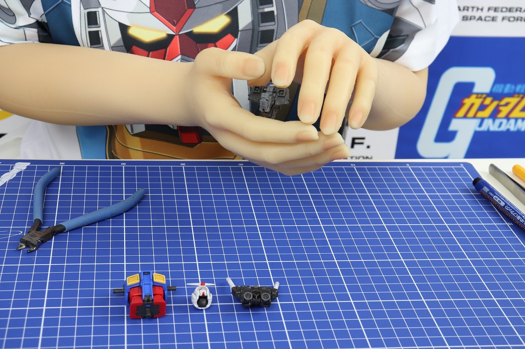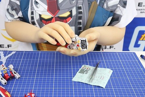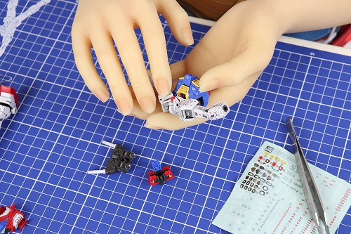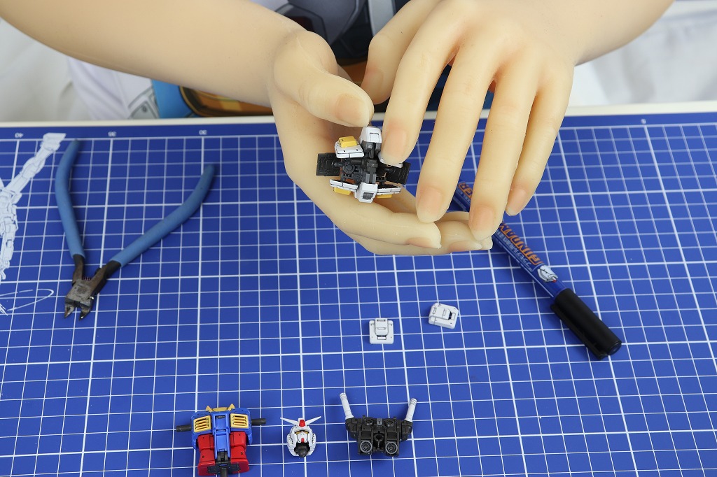 再び髪を束ねて、最後3体目のガンダムを組み立てます。