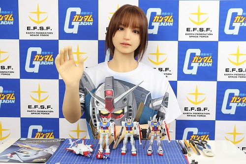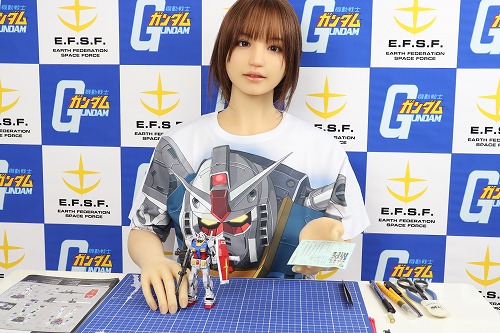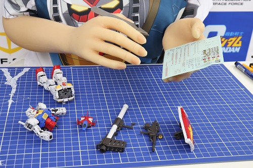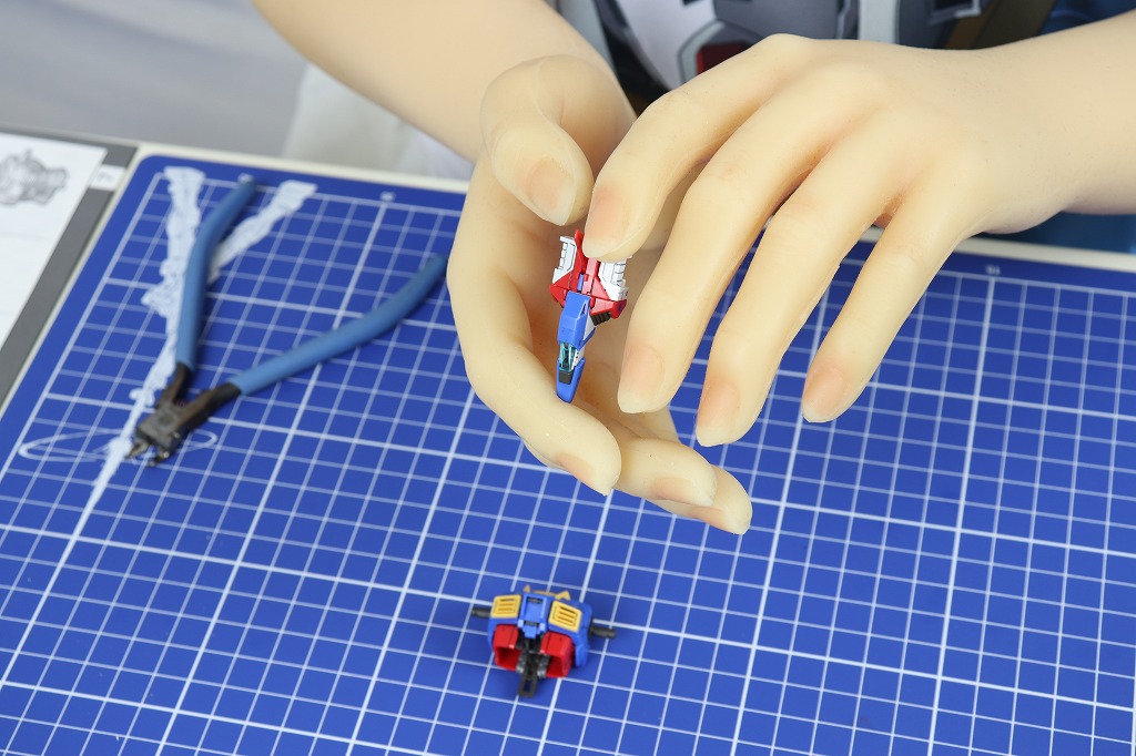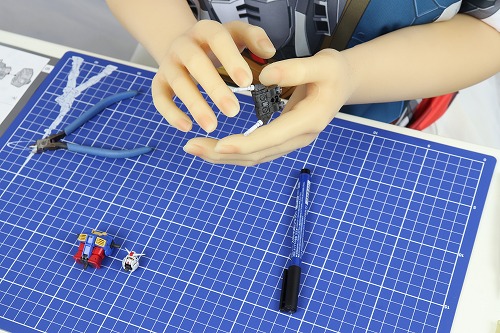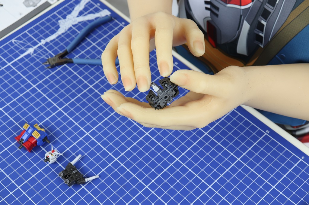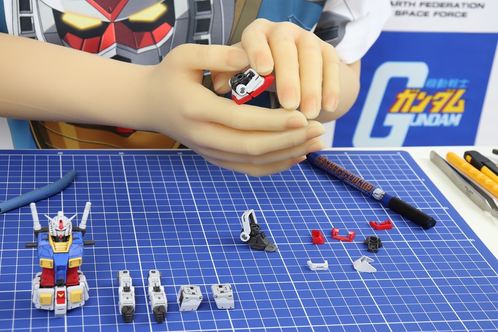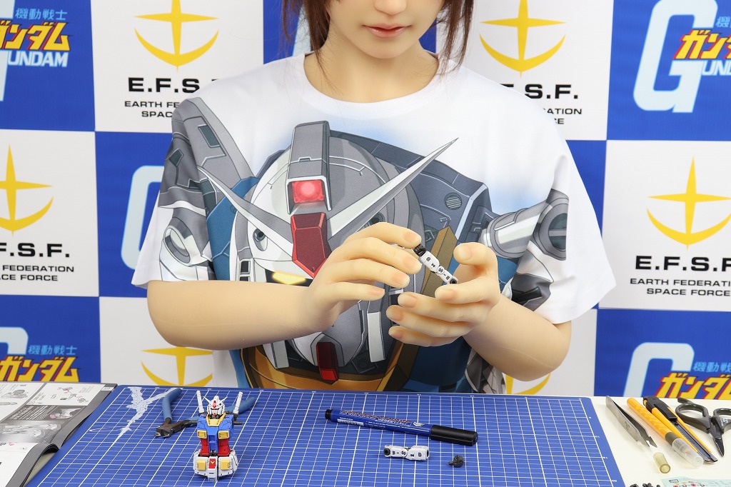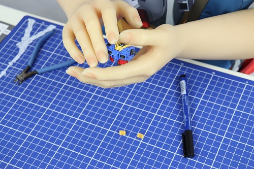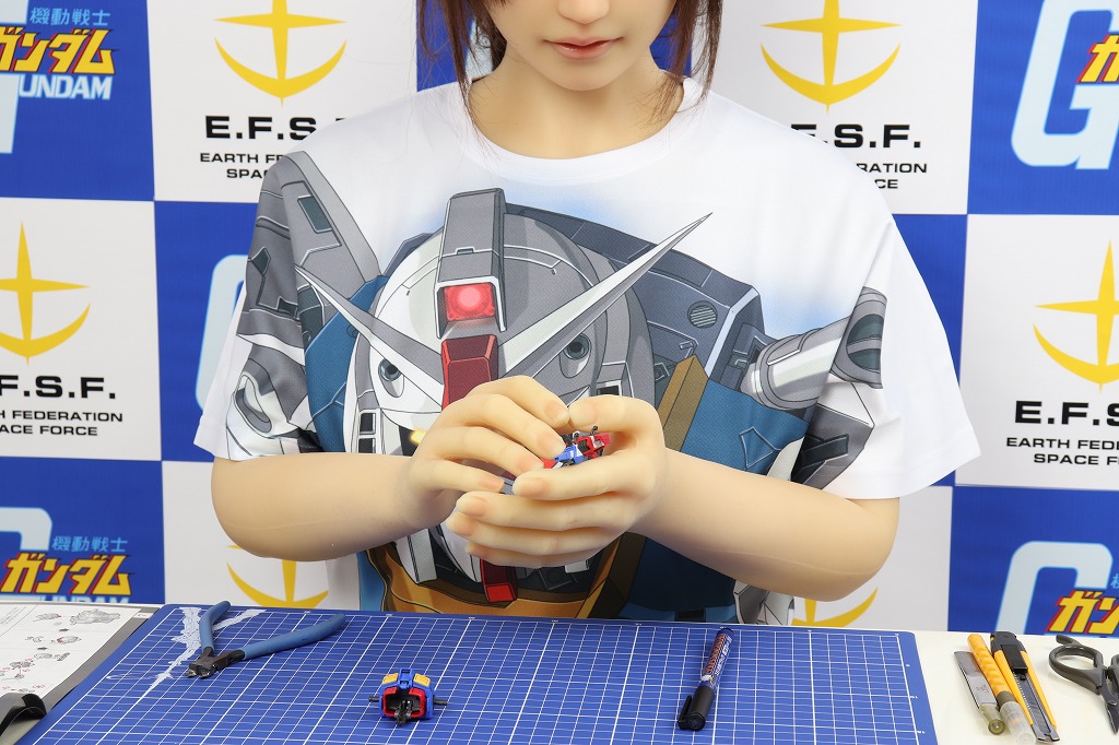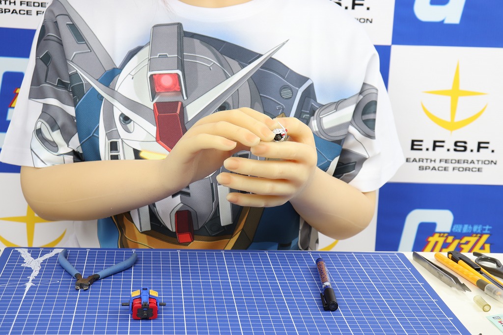 再び髪を束ねて、最後3体目のガンダムを組み立てます。
