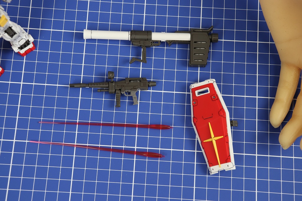 あと、組み立ては省略しますが、シールド、ハイパー・バズーカ、ビーム・ライフル、ビーム・サーベル2本があります。