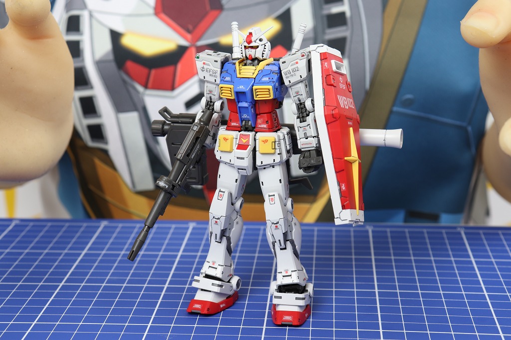 3体目は、「RG 1/144 RX-78-2 ガンダム Ver.2.0」です。これは、「機動戦士ガンダム」45周年記念商品として発売された、RGガンダムのバージョンアップ版です。