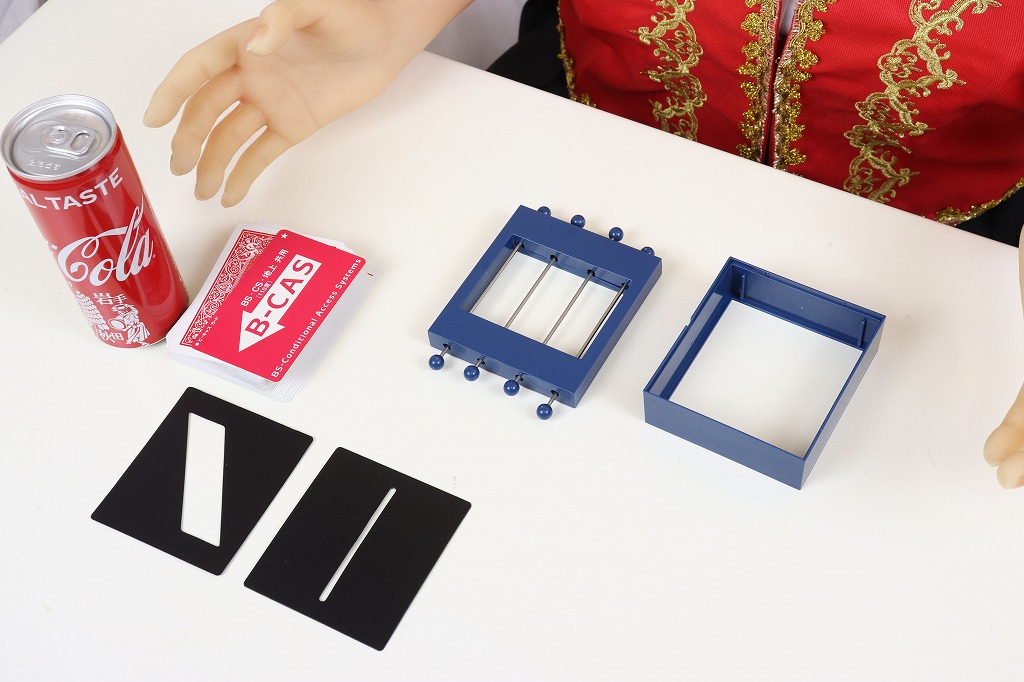 「溶ける鉄格子」ですが、最初に組み立てが必要です。形状にもよりますが、一応、フレームの枠より小さく、硬い物なら何でも貫通できます。鉄格子を触らせることは可能ですが、手渡しすることはできません。あと、音には注意が必要です。