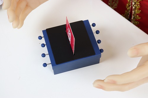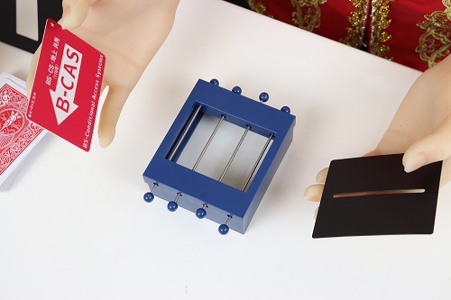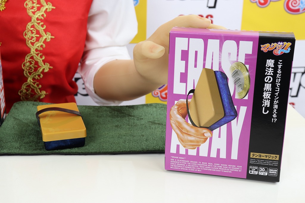 「魔法の黒板消し」ですが、全ての硬貨、及び鍵のような薄い板で演じられます。黒板消しはいつでも手渡しできますが、マットは一切動かせません。消したものをどのように出すかが重要です。