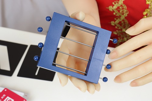 金属製で、曲がったり変形したりすることもありません。お客さんに丸い部分を動かしてもらったり、鉄格子に触って変形しないことを確かめてもらうこともできます。