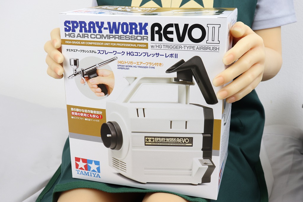 買ったのは、タミヤ「スプレーワーク HGコンプレッサーレボⅡ (HGトリガーエアーブラシ付き)」です。