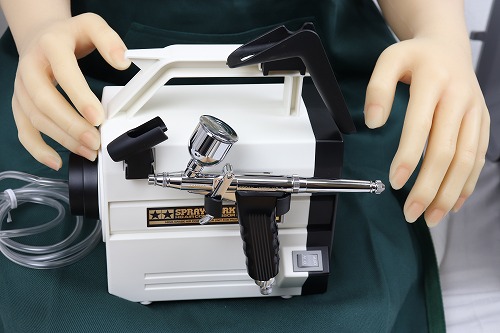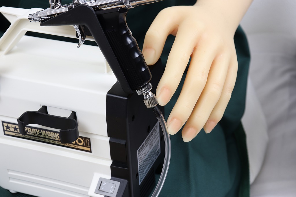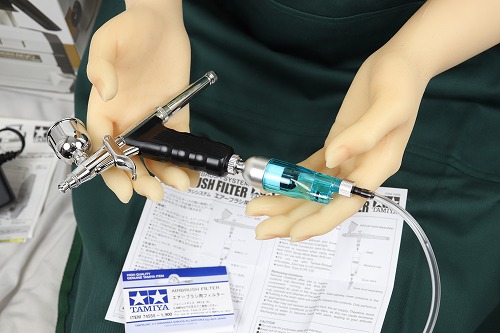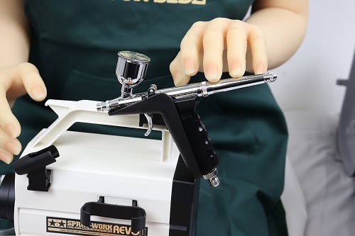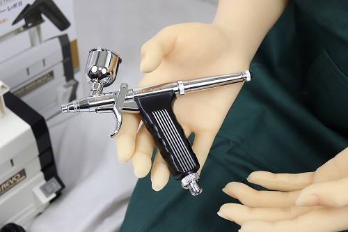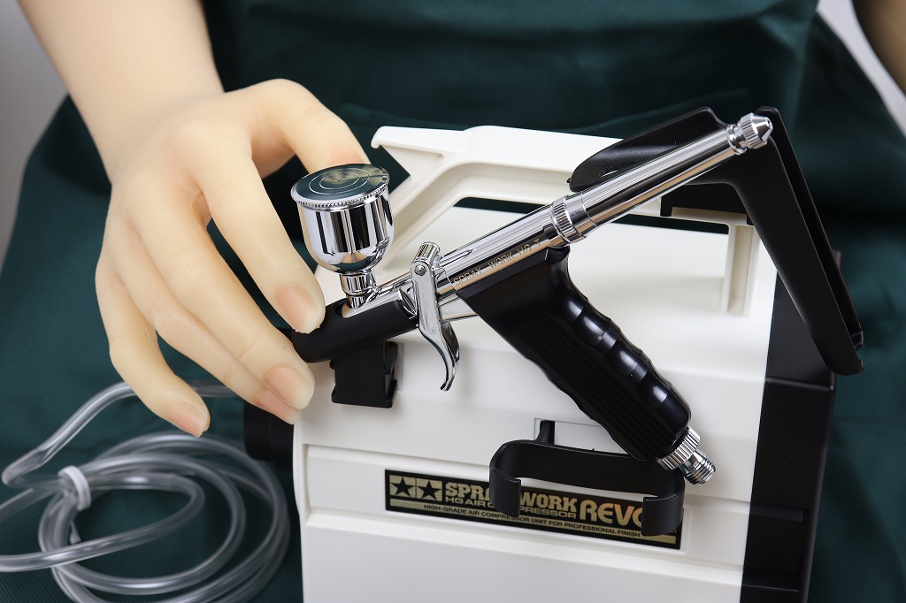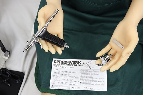 エアーブラシの使用イメージ写真です。実際に塗装しているわけではありません。