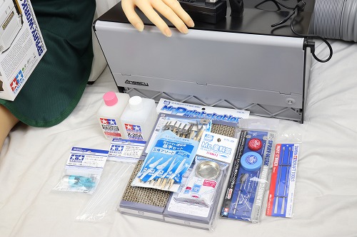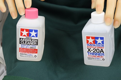 クリーナーとアクリル塗料用のうすめ液(X-20A)です。ここまで、全てタミヤ製で揃えました。