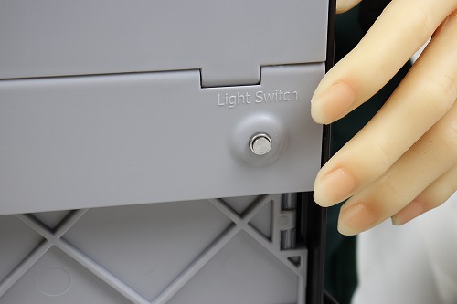もう一カ所は、LED電源です。内部にLEDが内臓されており、このボタンを押すことで点灯します。LEDの明るさは調節できません。