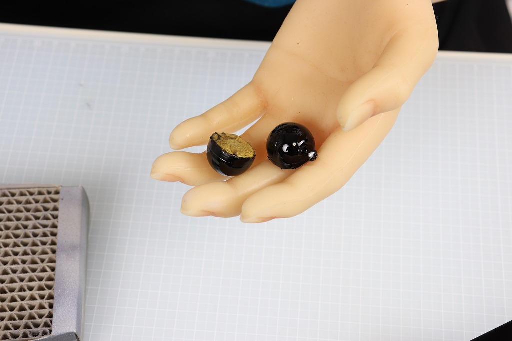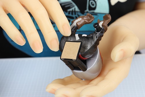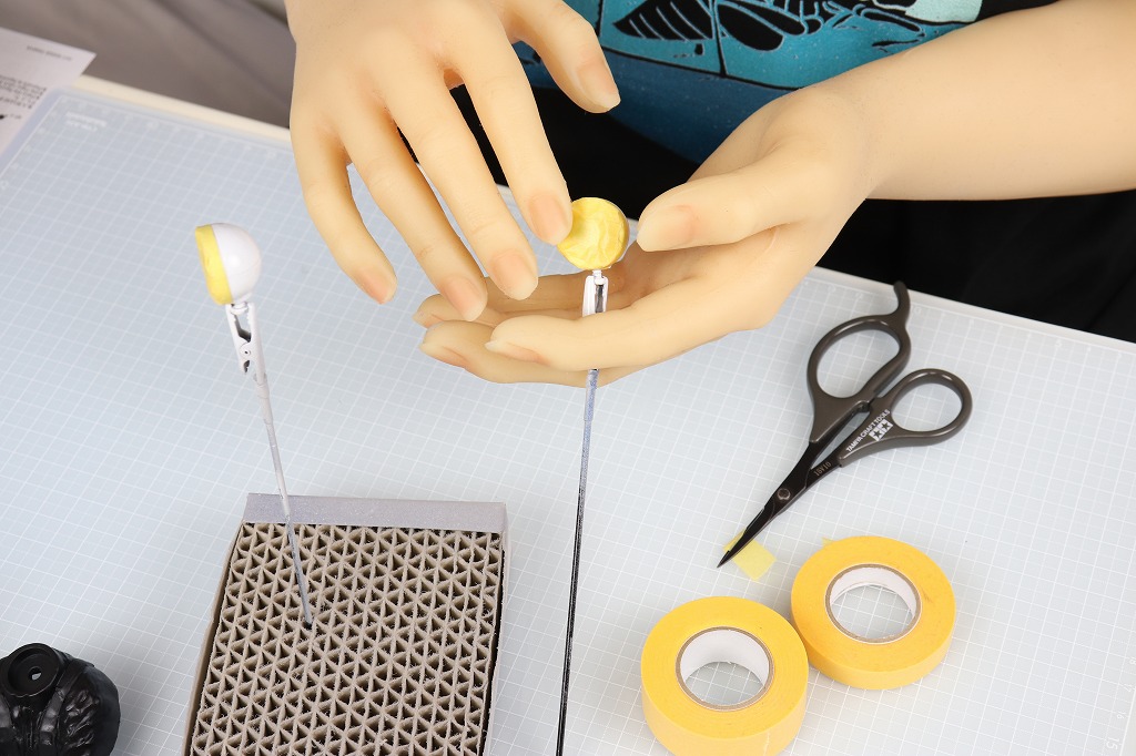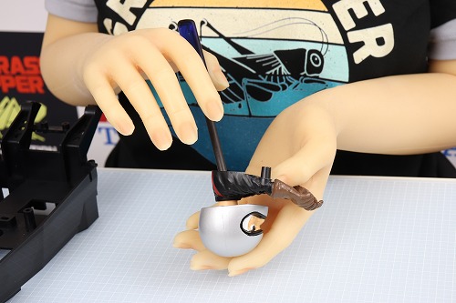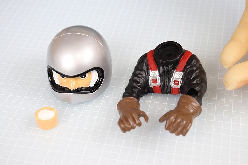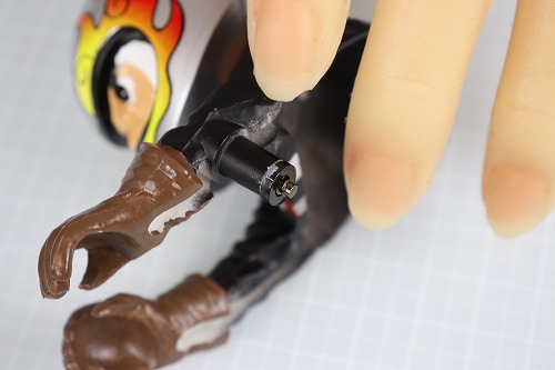 5番のパーツは、先端に接着します。このパーツによって人形の高さを少し上げ、ネジの出っ張りを少なくします。理由は後ほど。