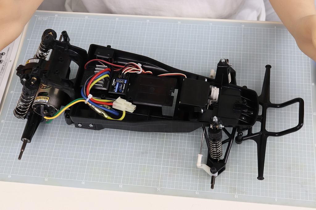 いつも使っているパーツなので、詳細は省略します。ちなみに、バッテリーはタミヤの「ニカドバッテリー7.2Vレーシングパック1600SP」を使います。