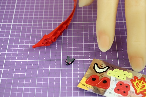 次は、頭部の組み立てですが、眼にシールを貼ります。