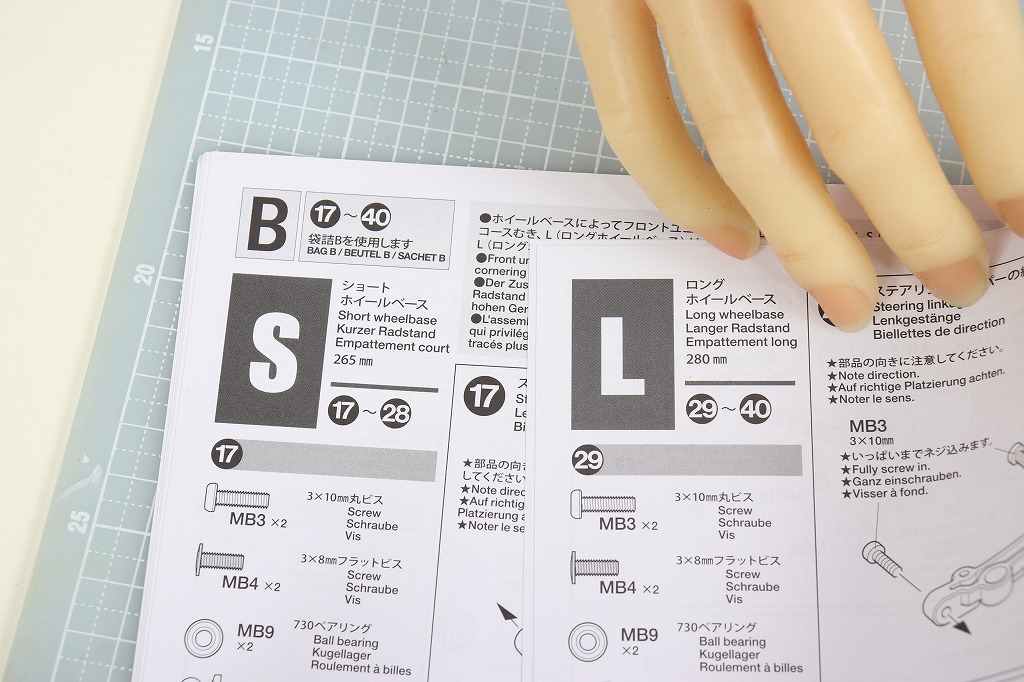 そして、ここから小回りが利く「ショートホイールベース」か、直進でスピードが出る「ロングホイールベース」かを選んで組み立てる必要があります。今回はスピード重視ではないので、ショートホイールベースで作ります。