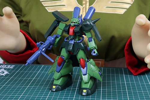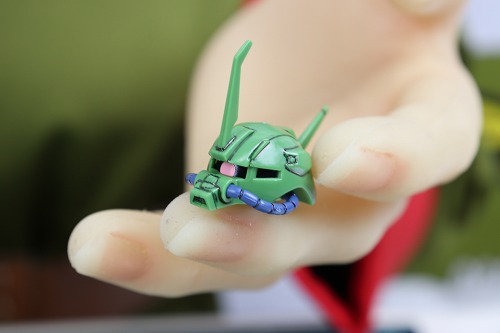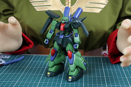 途中まで作った胸部に赤いパーツを取り付け、両腕、頭部、バックパックを付けて…
