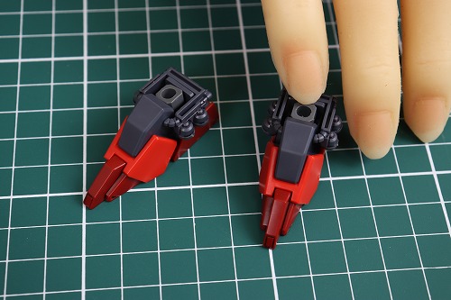 つま先に黄色いシールを貼り、足首を取り付けて…