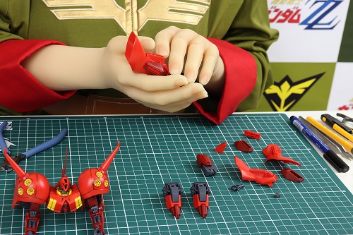 武器を装備しました。一応、ギャンがベースですが、ギャンの特徴である大きな丸いシールドはありません。