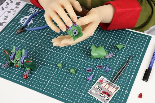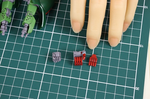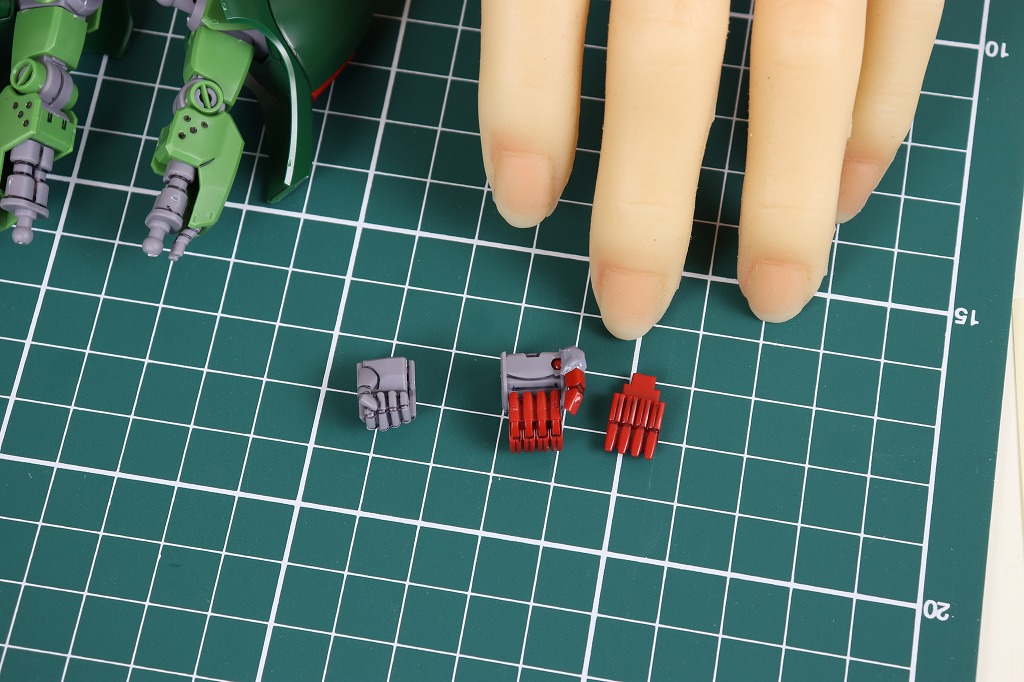 手は、右手1種類、左手2種類あるので選んで取り付けます。左手はフィンガー・ランチャーで、親指以外を交換する仕様になっています。