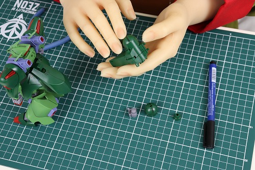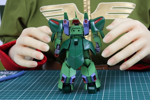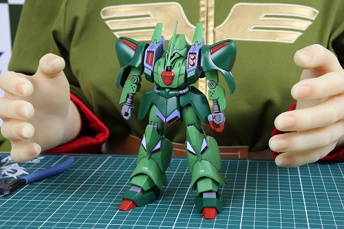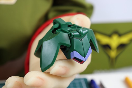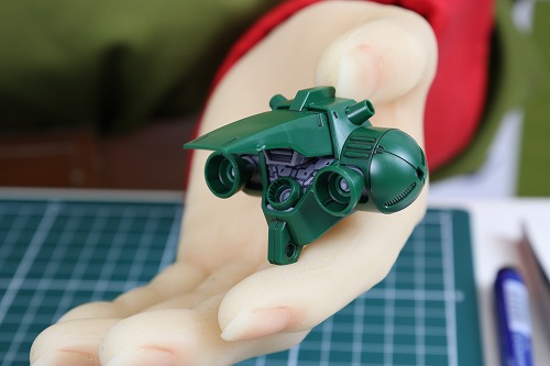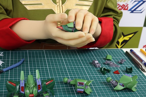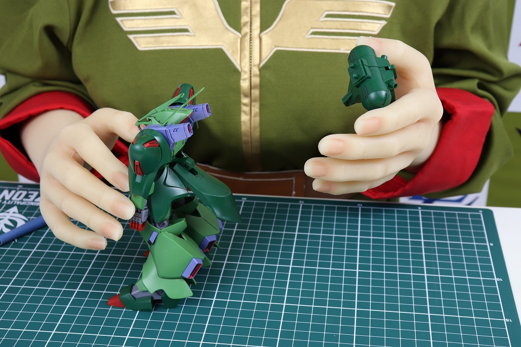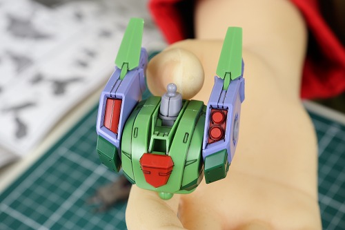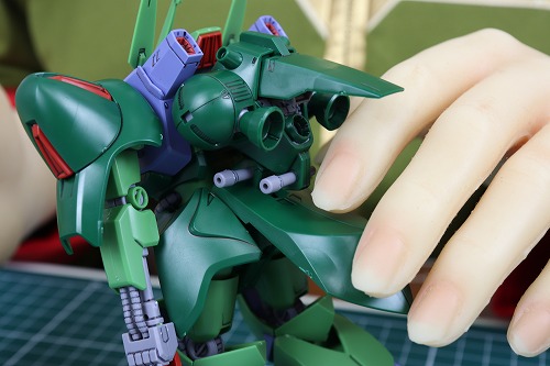 胸部の完成です。左胸をミサイル・ポッドカバーが開いた状態にしてみました。カバーとミサイル・ポッドは、パーツを交換して取り付けるようになっています。