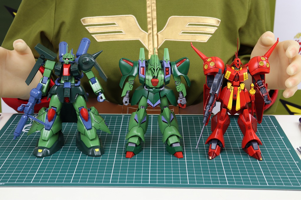 ということで、3体できました。左から、ザク、グフ、ギャンがベースになっています。