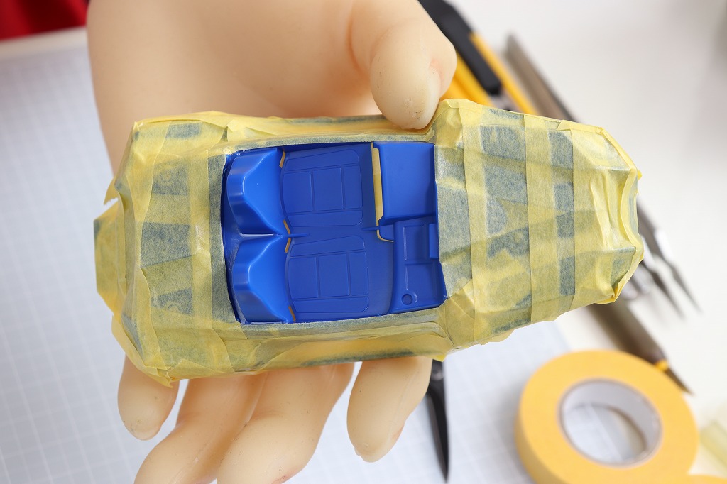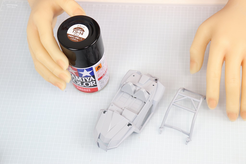 「くまモンバージョン」のボディとルーフバーは、全体に「ブラック(TS-14)」をスプレーします。