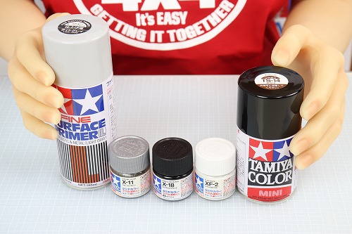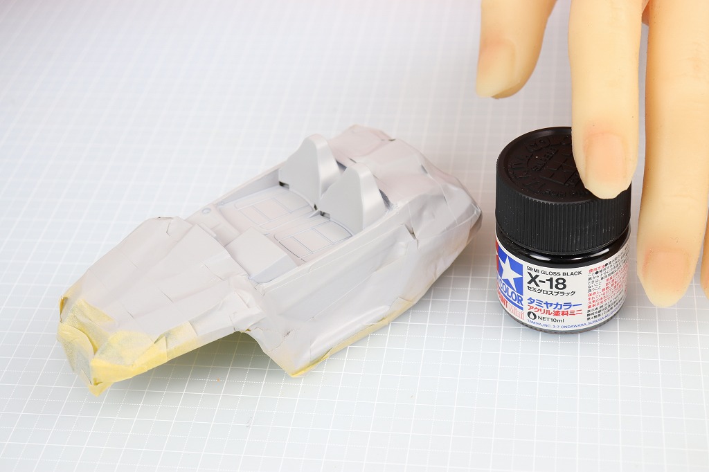 では、塗料を紹介します。「ファンブルン」のボディは、シート部分に「セミグロスブラック(X-18)」を塗ります。