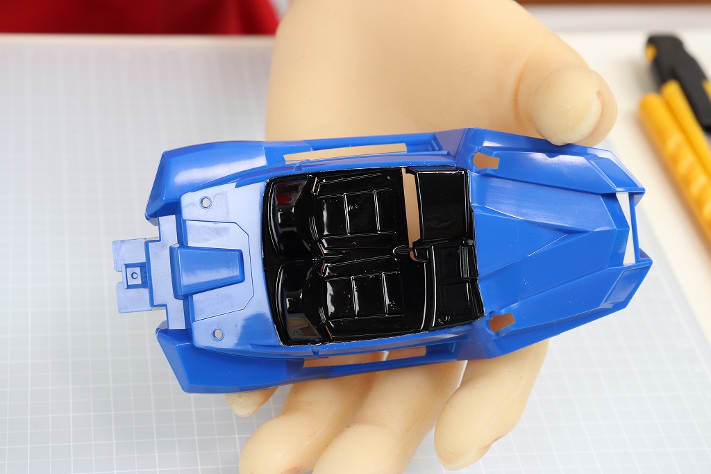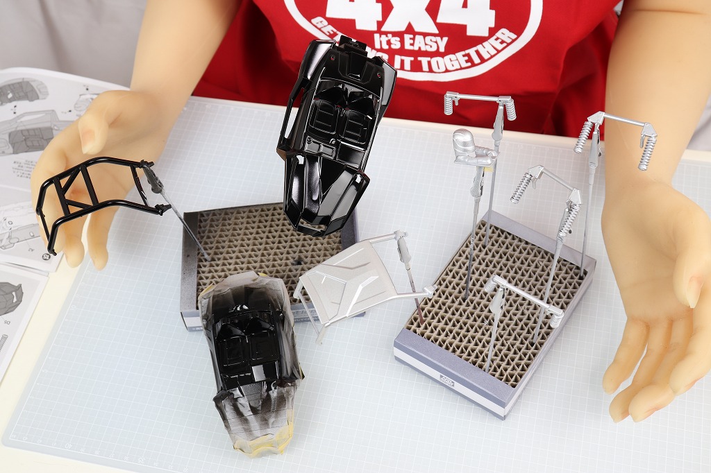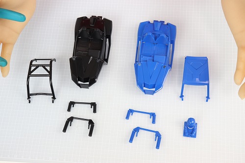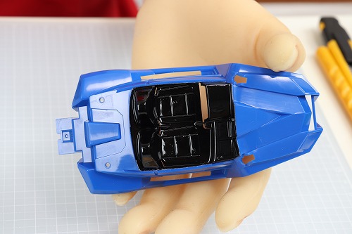 カットしました。塗装するのはボディとルーフ、ドライバー人形とダンパーです。