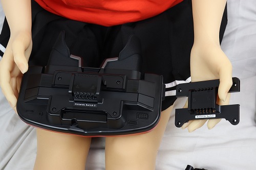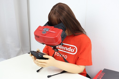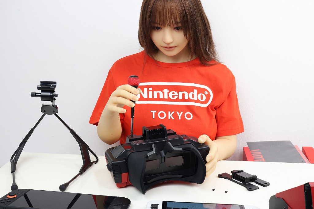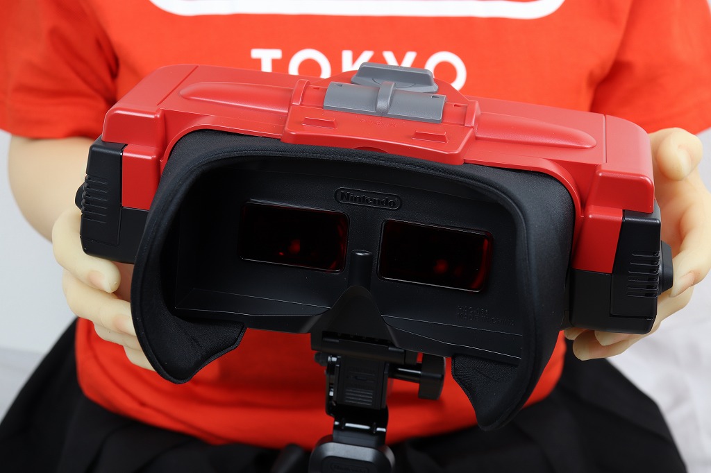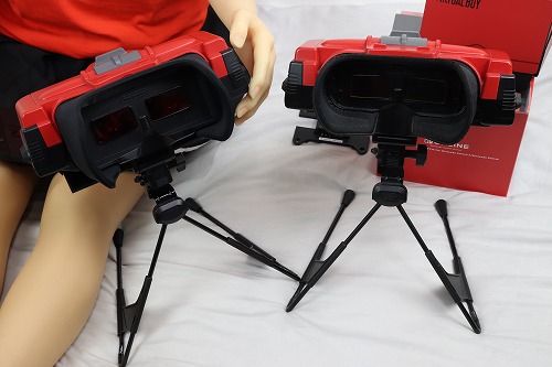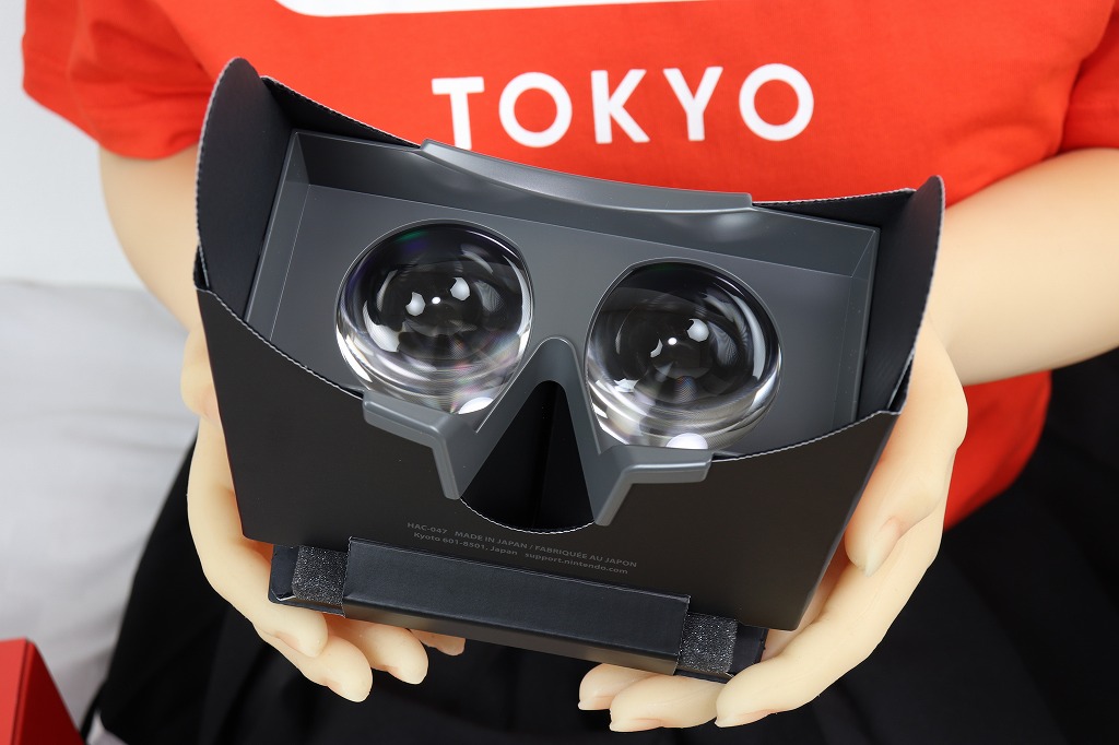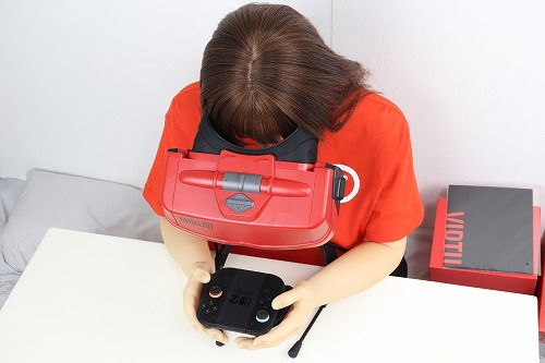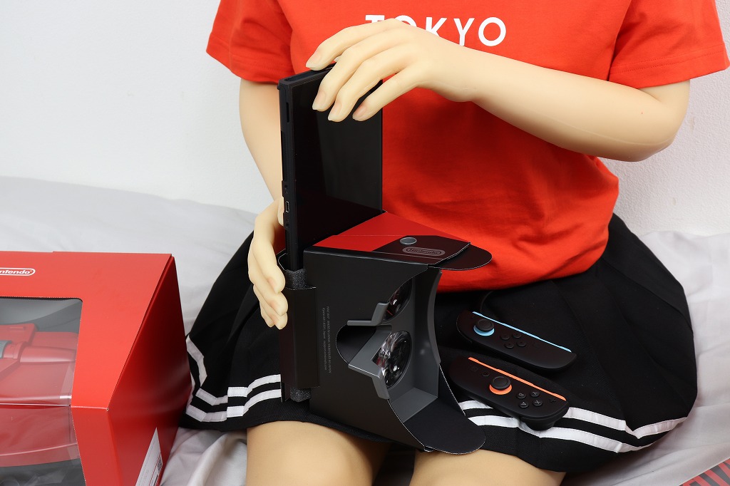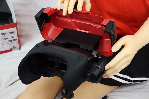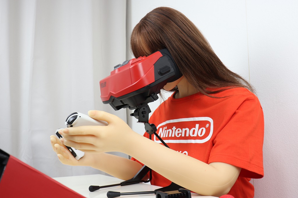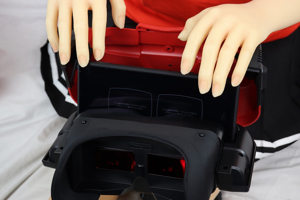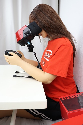 あとは、ジョイコンを戻し、両手で持ってレンズを覗き込みながらプレイします。ちなみに、ドールの腕では重くて持てませんでした。肘も90度以上曲がらないので、顔に近づけられません。