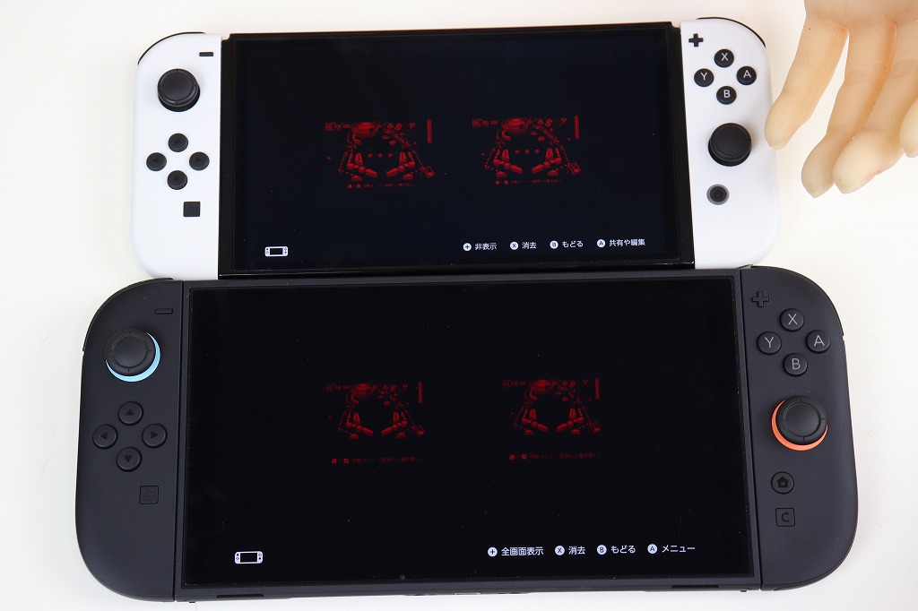 ここで、SwitchとSwitch 2本体で見え方が違うのか気になったので確認してみます。Switch本体は有機EL版を使います。