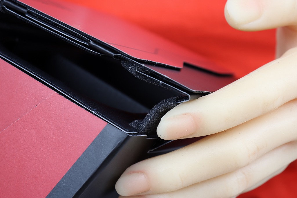 Switch本体を入れる場合、左右のスポンジが貼ってある部分を内側に曲げ、本体差し込み部分の高さを調節します。動かせるのはここくらいです。