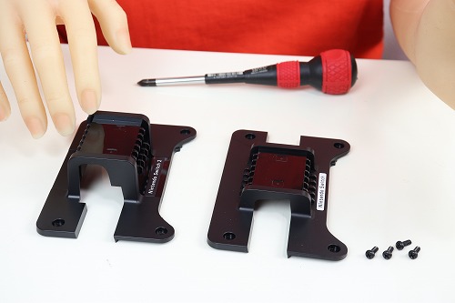 付属のアタッチメントは、Switch本体をセットするときに使います。購入時はSwitch 2用のアタッチメントが付いているので、これを外してSwitch用に交換します。交換にはドライバーが必要です。