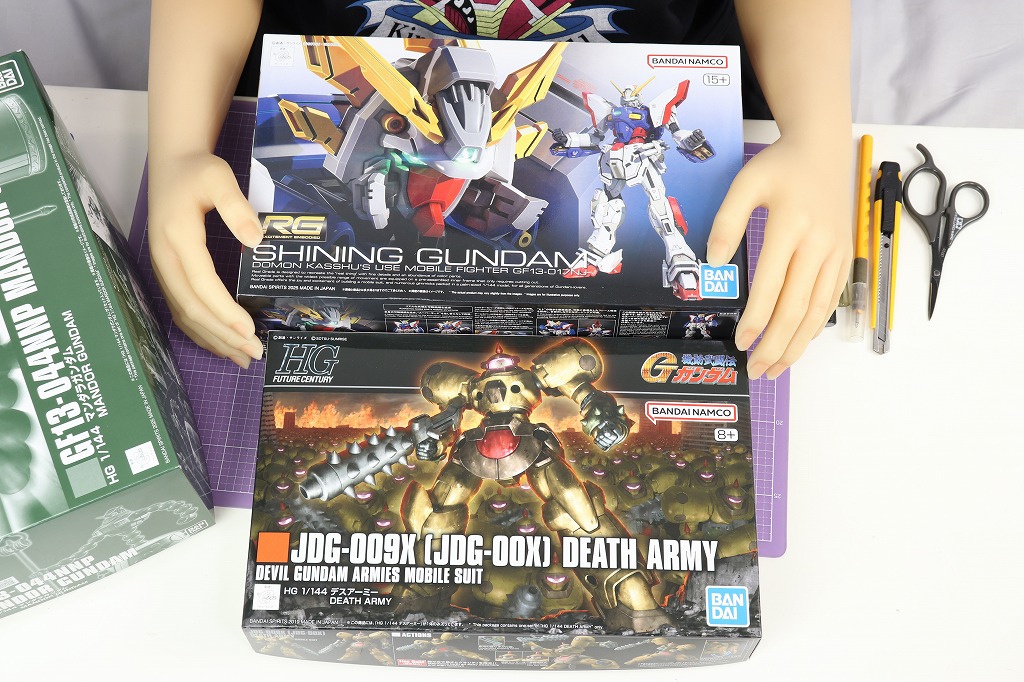 で、作るのは、一般販売品の「HG 1/144 JDG-009X デスアーミー」と「RG 1/144 シャイニングガンダム」…