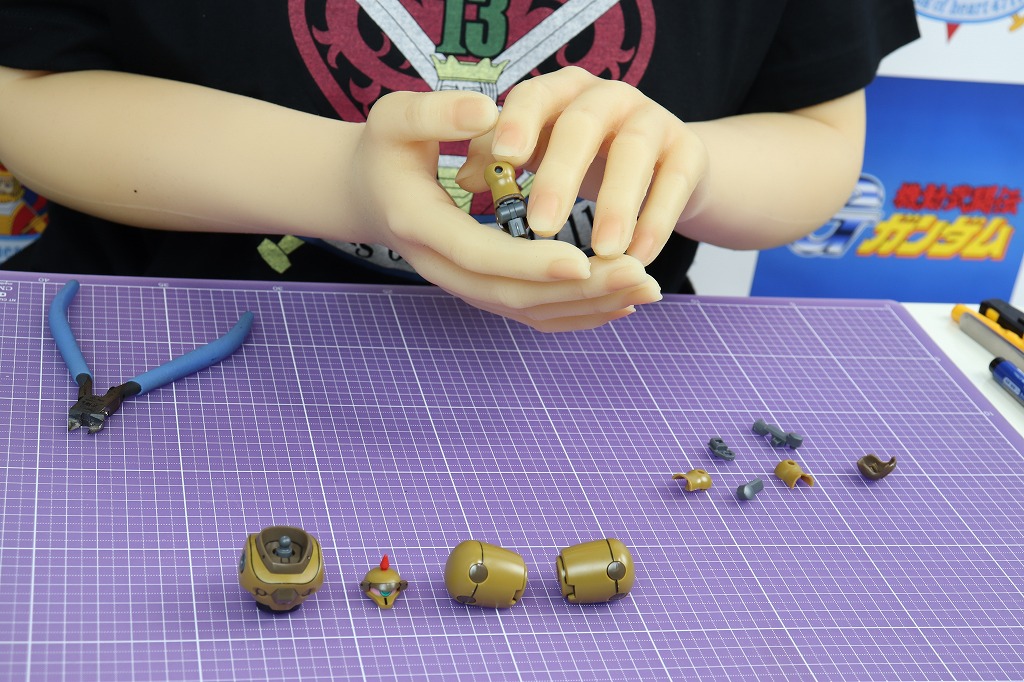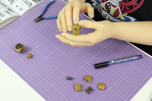 次は、頭部の組み立てですが、目にシールを貼ります。これで、シールは全て使い切りました。