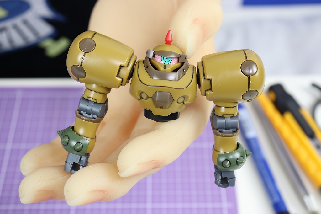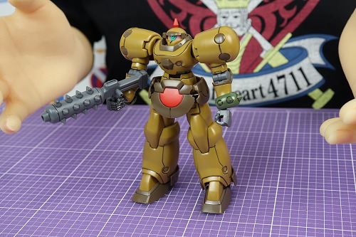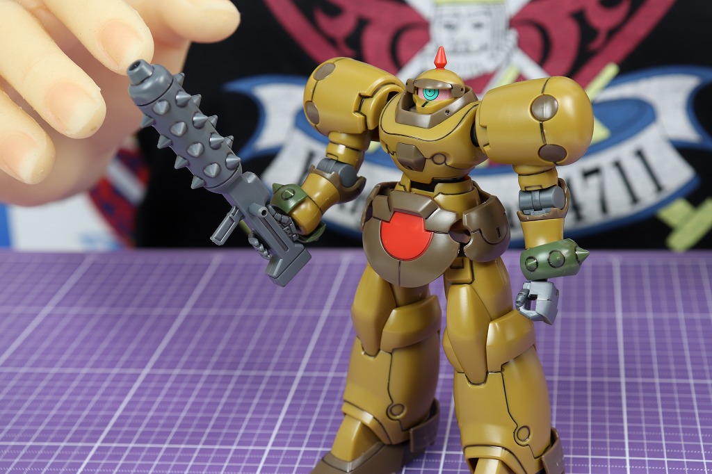 金棒型ビームライフルを持ってみました。目のせいで、ガンダムのキャラっぽくないですね。