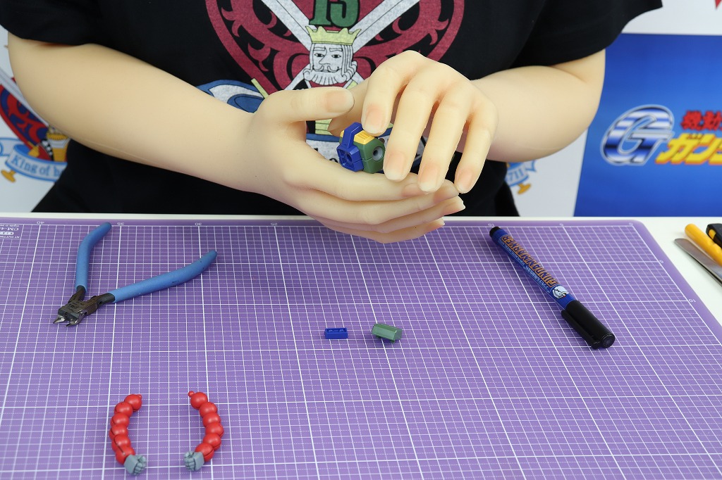 手は左右2種類ずつあるので、選んで取り付けます。指は一切動きません。