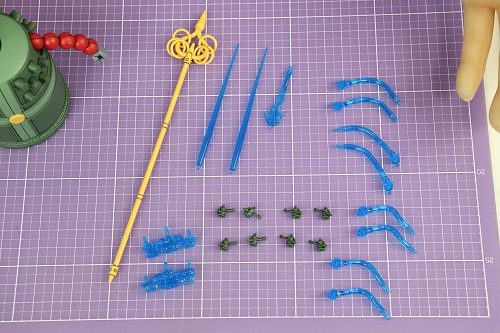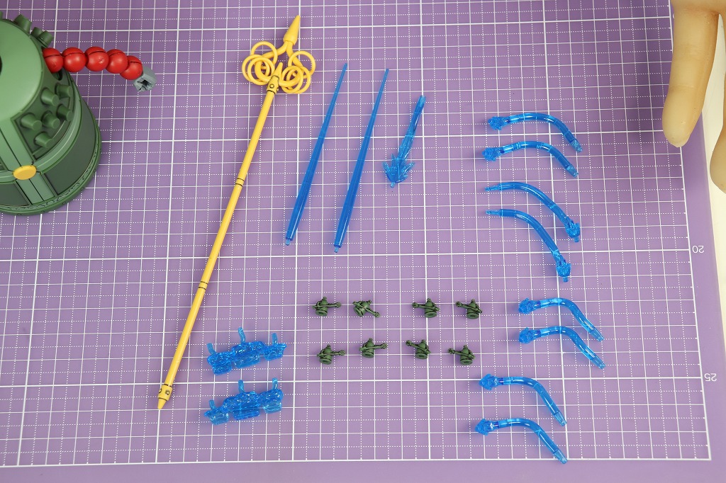 あと、組み立ては省略しますが、錫杖(しゃくじょう)1本とミニマンダラガンダム8体、エフェクトパーツがあります。