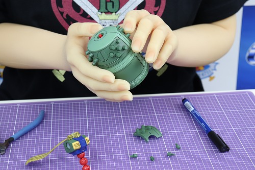 一部のパーツを外すことによって、上半身を釣り鐘の中に収納することができます。